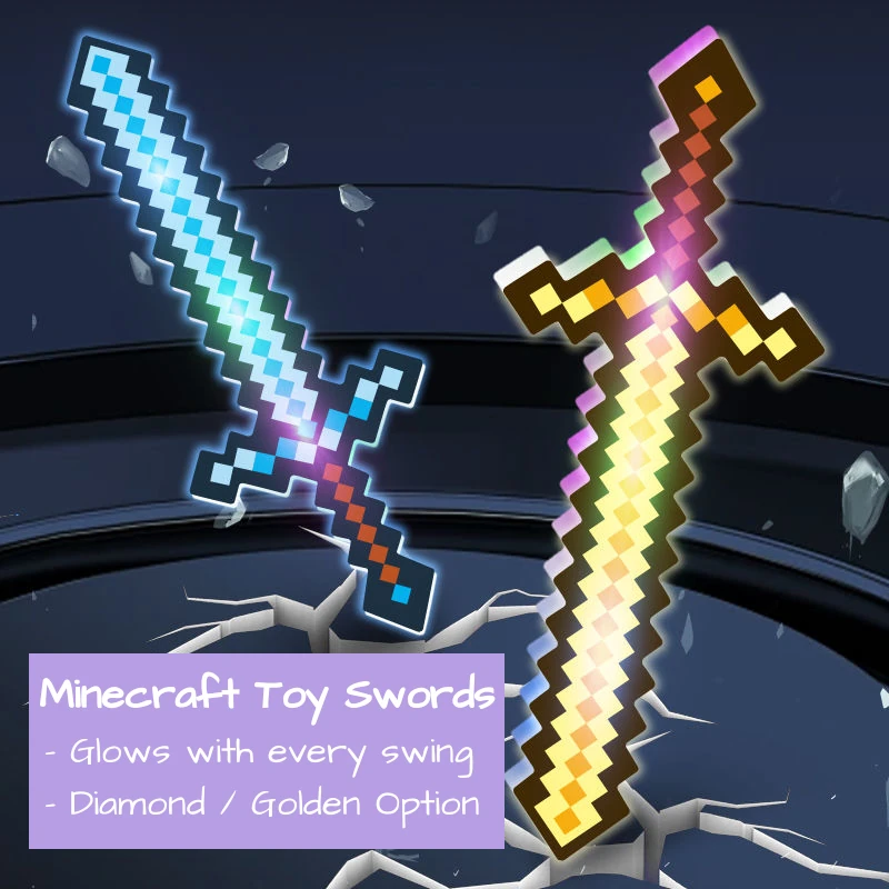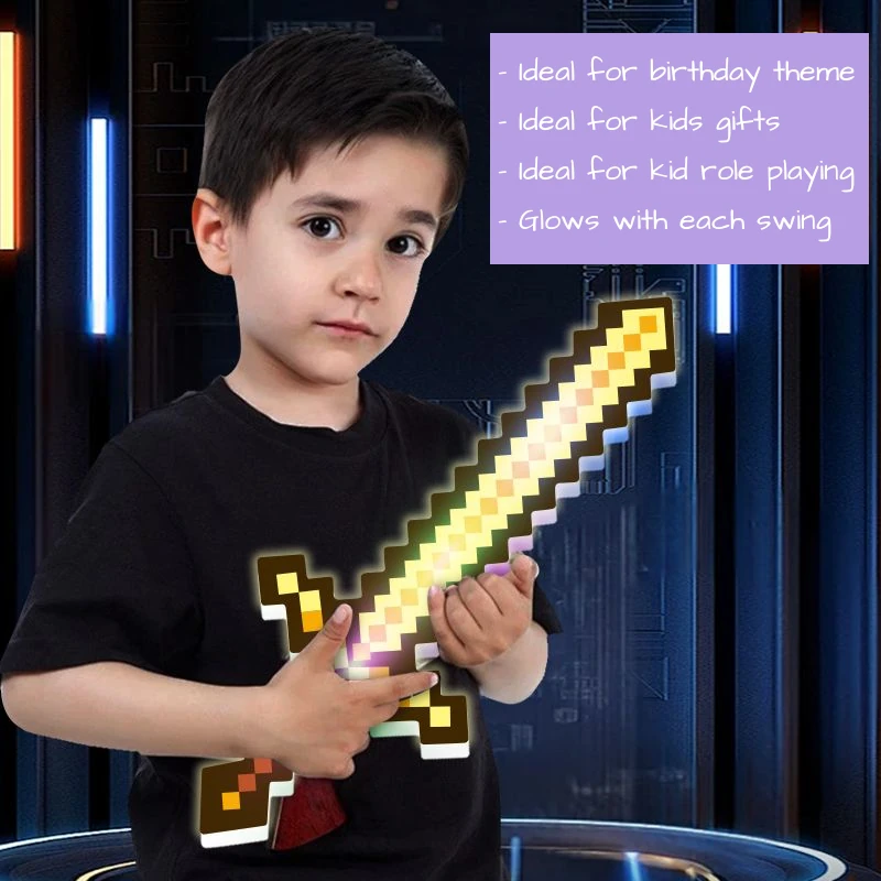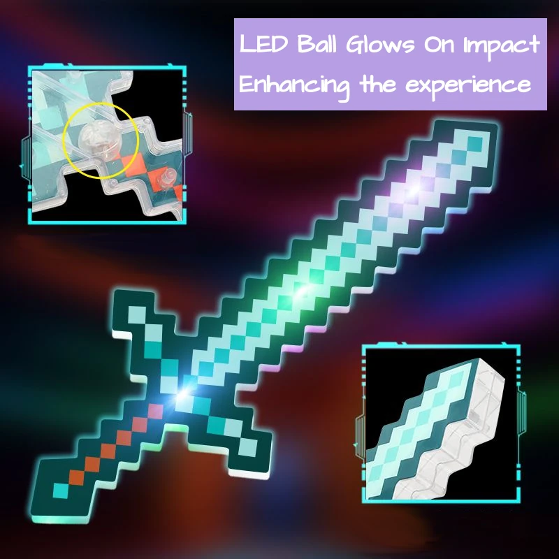 Unleash the magic of Minecraft with these motion-activated toy swords that glow brighter with every swing! Designed to mimic the game’s legendary blades, each sword features an internal LED ball that ignites in dazzling hues as you move.