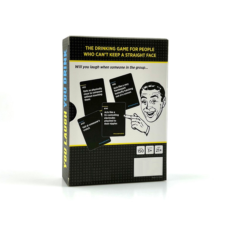 150 “You Laugh You Drink” Playing cards that instructs you to tease the other player to laugh and when he/she does, the person will have to drink. The game goes on to the next person; the winner will be the one being able to keep a poker face!