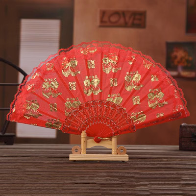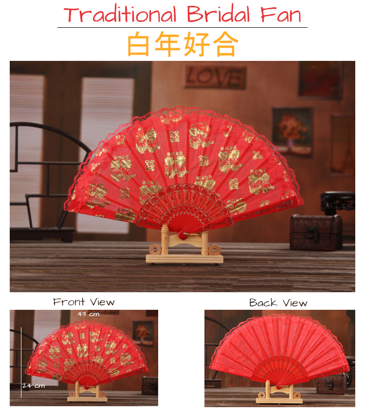 The Bridal 百年好合-双囍 Folding Fan has the 百年好合 as center piece wordings surrounded by 双囍 all over the fan.